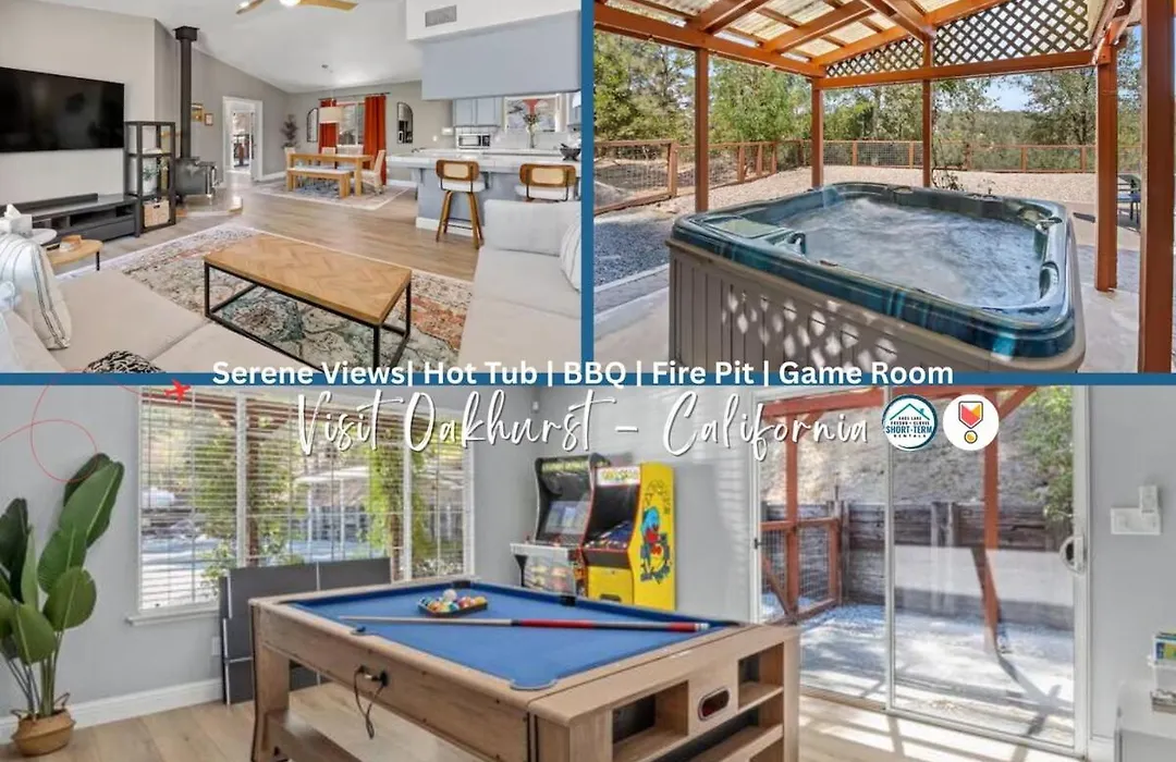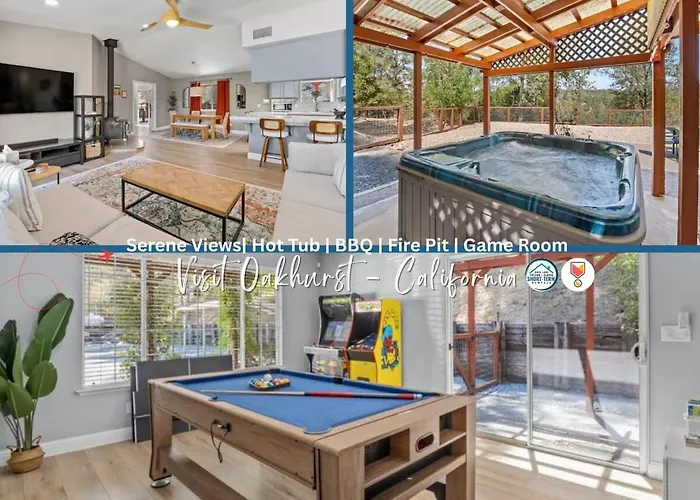 El Serene Views With Hot Tub, Bbq, Fire Pit, Game Room Oakhurst está situado a 6 km del Museo Infantil de la Sierra, y a unos 15 minutos en coche del Parque Histórico Fresno Flats. Este apartamento de 203 m² ofrece acceso a un centro de spa, garantizando la máxima relajación.